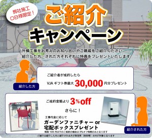 ご紹介された方が成約したら工事代金に応じてVJAギフト券 最大30,000円分プレゼント!
